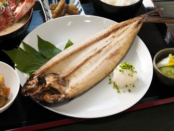 地魚干物食堂、藍ヶ江水産では、人気の干物を楽しめる食堂を用意しております。八丈伝統のクサヤ製品の販売や加工をおこなっています。
