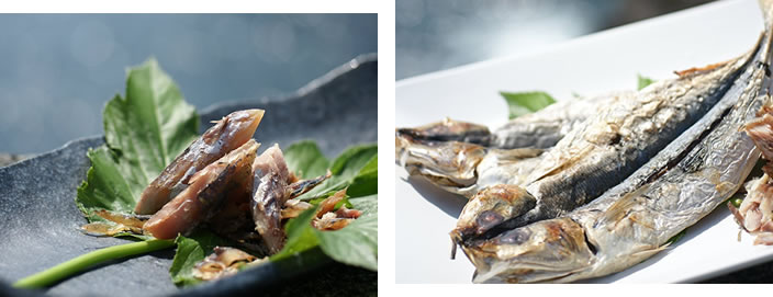 八丈島近海で獲れた「飛魚」を、120年の歴史を持つくさや液と何年も続いた伝統の製法でおいしいくさやに仕上ました。 |